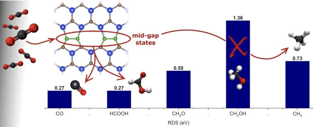 Como parte de nuestros servicios, realizamos un análisis detallado de cómo la incorporación de átomos de boro y nitrógeno modifica el entorno electrónico local de los 585-ELDs, afectando las energías de adsorción y los mecanismos de transferencia de carga asociados a los intermediarios clave de la CO₂RR. Nuestro flujo de trabajo incluye la optimización geométrica, cálculos de estructura electrónica (incluyendo densidad de estados y distribución de carga) y simulaciones AIMD a temperatura finita para evaluar la robustez estructural en condiciones realistas.